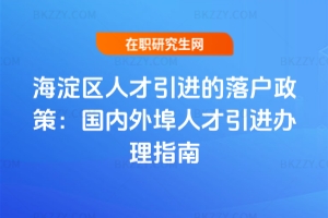 根據現行政策要求及市人才工作局指示,海淀區人民政府發布了《海淀區人才引進辦理指南》,本指南將按照實際情況及時更新調整。下文就為各位帶來海淀區人才引進的落戶政策:國內外埠人才引進辦理指南的詳細內容。……